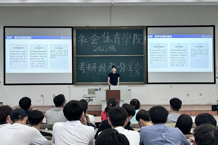为助力同学们精准把握考研动态、筑牢备考信心。近日,社会体育永利误乐域邀请三位2021级成功"上岸"的优秀学长为2022-2024级进行考研经验分享,以亲身经历为学弟学妹点亮考研之路。